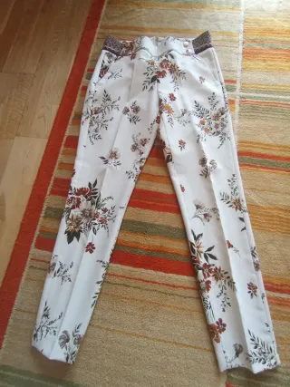 Elegante pantalón de la marca Ferrache con un bonito estampado floral. - Diseño multicolor sobre fondo blanco. - Cintura con detalle de estampado. - Cierre con botones.