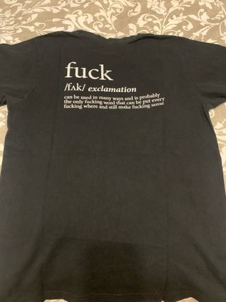 Camiseta negra de la marca Snipe con un diseño gráfico. - Estampado con la definición de la palabra fuck. - Diseño de texto blanco sobre fondo negro.