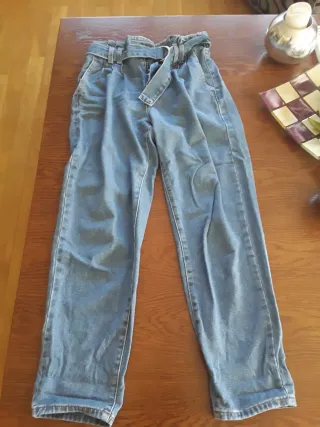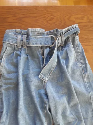 Pantalón vaquero de la marca Denin. - Cintura alta con cinturón. - Cierre de cremallera. - Bolsillos laterales.
