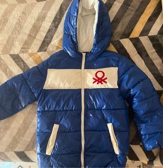 Chaqueta acolchada con capucha y logo de la marca. - Diseño con franja blanca central. - Bolsillos laterales. - Cierre de cremallera.