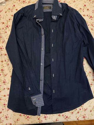 Camisa de vestir de la marca Nuñez de Arenas. - Cuello con detalles de rayas. - Puños abotonados. - Raya vertical en la parte frontal.