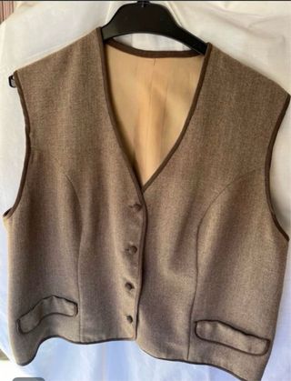 Lote de Chalecos de señora en tonos gris y marrón, ideal para añadir un toque elegante a tu atuendo. lote de dos chalecos mujer, talla 54. En color gris y marron. En buen estado. Buena tela y forrados. Los dos por 8€ - Diseño clásico con cuello en V. - Cierre de botones. - Bolsillos delanteros decorativos. - Ribete en contraste.