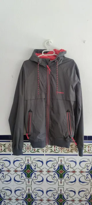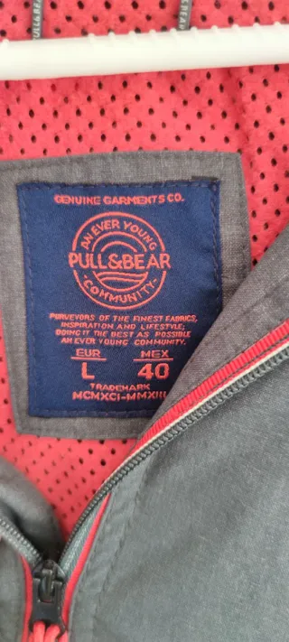 Cazadora de la marca Pull&Bear. - Color gris con detalles en rojo. - Talla L.