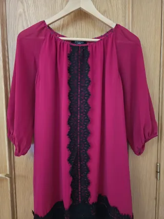 Vestido en perfecto con un bonito detalle de encaje.Escote redondo con adornos. Encaje negro en el centro y en el bajo. Mide de sisa a sisa 53,5 cm y de largo 84 cm HAGO ENVÍOS