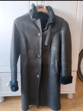 Elegante abrigo o chaquetón de piel para mujer. Una prenda clásica y versátil. - Diseño largo. - Cierre de botones.