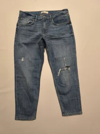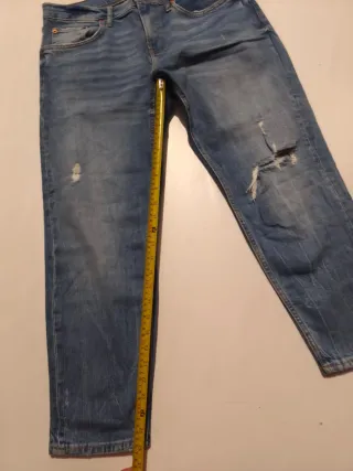 🛍️ Vaquero ancho azul largo con efecto desgaste y rotos ,en muy buen estado 🧸Talla:44 👑Marca:Zara 📚Color:azul ☎️Información🗒️: si desea puedo proporcionarle más fotos y medidas, como cualquier duda que tenga.❔