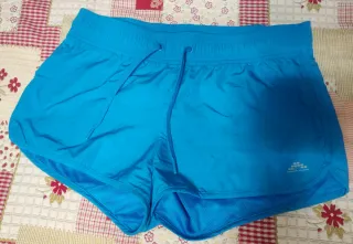 Pantalón corto deportivo de color azul, ideal para actividades al aire libre. - Cintura elástica con cordón ajustable. - Tejido ligero y transpirable. - Detalle de malla en los bajos. - Logo de la marca en la parte inferior.