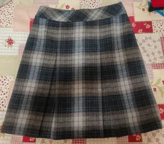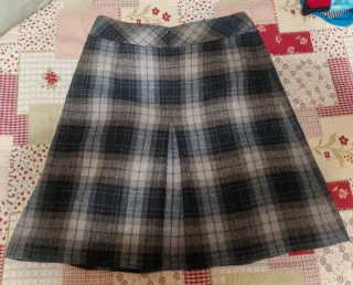 Falda con estampado de cuadros en tonos grises y negros. Diseño plisado. - Tejido de lana. - Cintura marcada.