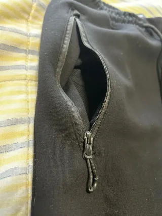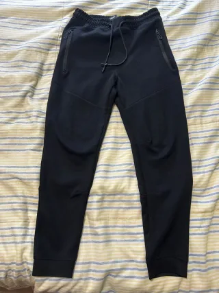 Chándal de la marca Bershka en color negro. - Diseño moderno con cremalleras en los bolsillos. - Cintura elástica con cordón ajustable. - Puños y tobillos elásticos.