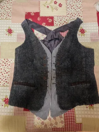 Chaleco de la marca Yera con un diseño moderno. - Tejido texturizado en tonos negros y grises. - Cierre de enganches. - Detalle de bolsillos. - Tirantes cruzados en la espalda.