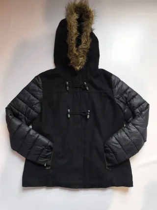 Chaquetón de la marca Zara en talla M. Diseño moderno y elegante. - Cierre cruzado con botones. - Bolsillos delanteros con solapa. - Cuello amplio con capucha.