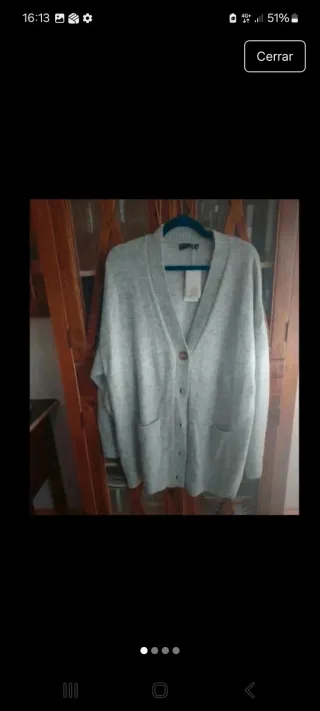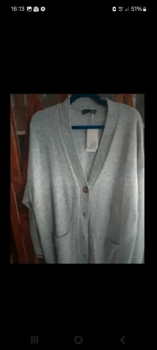 Chaqueta de punto de la marca Mango, con etiqueta. - Diseño de punto fino. - Cuello en V. - Cierre de botones. - Dos bolsillos delanteros. Para talla 50-52 aproximadamente