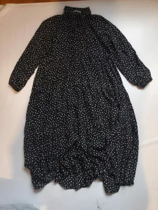 🛍️Vestido largo con mangas ¾ con estampado de corazones ,en muy buen estado 🧸Talla:L 👑Marca:Pull & Bear 📚Color: negro, blanco 🪜Medidas: *APROXIMADAS* -Largo:119cm -Ancho:52cm ☎️Información🗒️: si desea puedo proporcionarle más fotos y medidas, como cualquier duda que tenga.❔
