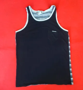 Camiseta de tirantes con un diseño moderno y llamativo. - Detalle de bolsillo en el pecho. - Paneles laterales a rayas grises y blancas. - Ribete blanco en cuello y sisas.
