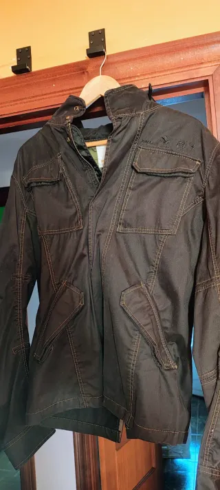 Chaqueta de diseño Diesel en color negro.Talla L,pero talla pequeño es una M. - Bolsillos frontales con solapa. - Costuras a contraste. - Cuello alto.