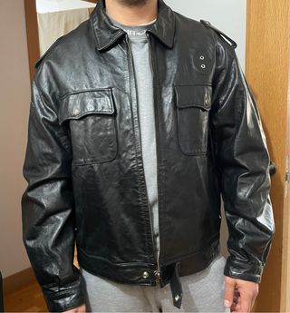Chaqueta de piel vintage original de la marca Diesel, fabricada en Italia, talla XXL pero da talla L, piel sin rotura ni reparación, solamente le falta el embellecedor de la cremallera. - Diseño clásico. - Cierre de cremallera. - Bolsillos frontales con solapa. - Detalle de hombreras.