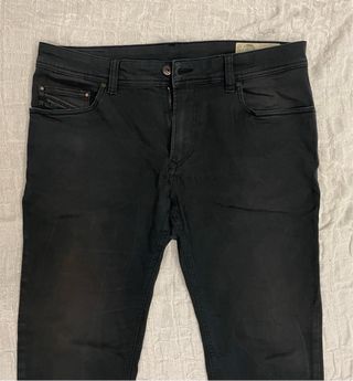 Pantalón vaquero jeans Diesel, talla W34 L32 (medida largo en última foto), modelo Thavar-XP slim-skinny con elastano, color negro efecto lavado. Muy buen estado, muy poco uso