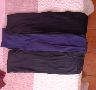 Lote de ropa de maternidad en talla L. Tanto los pantalones como las camisetas tienen hueco para la tripa y se pueden utilizar hasta el final del embarazo sin problema. Son prendas muy cómodas y funcionales para esta etapa. Incluye: - 14 leggins largos - 4 pantalones ciclistas - 3 pantalones cortos - 3 camisetas/jerseys de manga larga bastante calentitos - 3 camisetas de tirantes Preferible entrega en mano, pero se acepta envío.