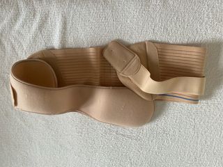 Faja de soporte para embarazo y postparto. - Diseño de bandas elásticas. - Color beige. - Talla L.