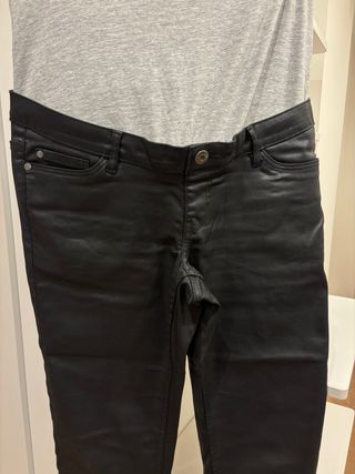 Pantalones negros encerados, tobilleros, talla 40 (aunque ponga 42 tallan pequeños). Premamá, embarazo. Nuevos sin etiqueta por no valerme. Palabras clave: nueva, larga, oversize, tirantes, manga corta, pantalón, vaquero, pitillo, jeans, camisa, camiseta, Slim, entallada, ajustada, bermuda, short, tejanos, corto, largo, marca, barato, zapatos, calzado, chino, vestir, sport, deporte, zapatillas, hombre, mujer, negro, rojo, blanco, blanca, azul, morado, rosa, beige, camel, marino, verde, militar, chico, chica, talla, s, m, l, XL, xxl, 34, 36, 38, 40, 42, nuevo, polo, gafas, sol, óptica, casa, hogar