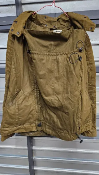 Abrigo de embarazo y porteo. Lleva una pieza separada que se puede insertar delante o en la espalda, según done lleves el bebé. Una vez finalitzada esta etapa, sirve sin la pieza como abrigo normal. Es lo más práctico que existe. Está en buen eatado y solo lo he usado yo. - Color verde oliva. - Capucha se puede quitar o poner. - Cierre frontal con cremallera. - Cordón ajustable para mejor cierre.