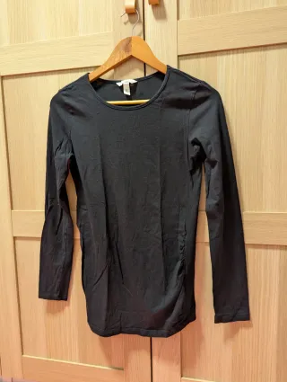 Conjunto de tres camisetas de manga larga, ideales para el embarazo, cómodas y versátiles. Son de H&M. Además regalo vestido en buen estado de premamá. - Camiseta negra. - Camiseta blanca acanalada. - Camiseta gris.