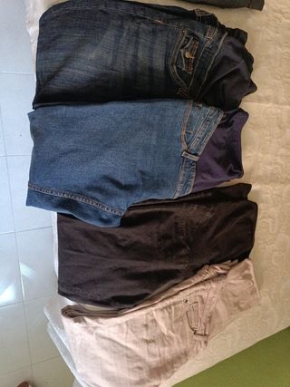 pantalones premamá diferentes tallas y modelos. Cada uno 6€ vaqueros talla 40 negros talla M beige talla 38