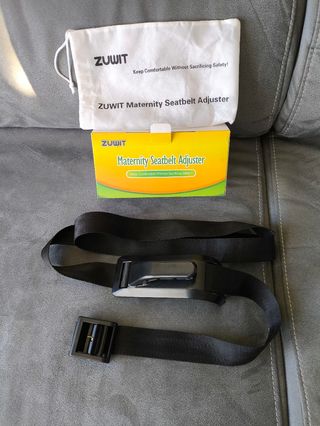 Este cinturón premamá está diseñado para ofrecer comodidad durante el embarazo. - Color gris oscuro. - Material suave al tacto. - Incluye correas ajustables y hebilla de seguridad. - Etiqueta Bump Belt visible.