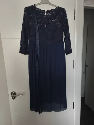 Vestido premamá marca Prenatal color azul marino. Es Talla M pero da talla porque yo tenía mucha tripa y me valía. Es muy ponible y lo utilice tanto en una boda como para otras ocasiones. Queda muy bonito y elegante. Tiene un elástico debajo del pecho así que se va adaptando a la tripa. Está como nuevo