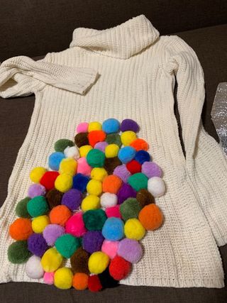Disfraz divertido para embarazadas, imitando una máquina de chicles. - Adornado con pompones de colores. - el jersey lo regalo