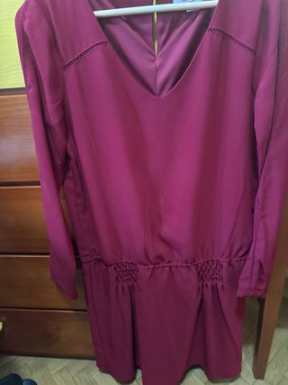 Vestido de encaje con forro interior de algodón en color burdeos para mujer talla S. Las mangas no llevan forro, solo el encaje. Perfecto estado, como nuevo. Ideal para ir arreglada, eventos. Más ropa, zapatos, juguetes y demás artículos de bebé, niña/niño y embarazada en mi perfil.