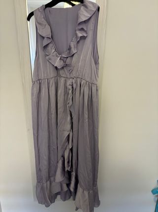 Vestido de fiesta para embarazada talla XXL de Shein en color morado. Es como de raso y está sin estrenar.