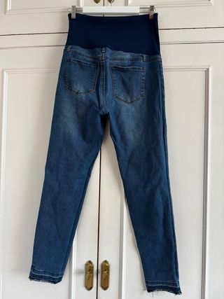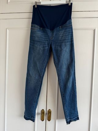 Pantalón vaquero diseñado para el embarazo. - Cintura alta elástica para mayor comodidad. - Corte ajustado. - Tejido vaquero resistente.