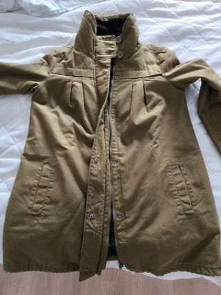 Abrigo largo de color verde militar con un diseño tipo globo, es holgado y perfecto para embarazadas. - Cierre de botones y cremallera doble. - Cuello alto, con borreguito interior. - Cordones ajustables en la parte inferior. - Bolsillos en los laterales - Botones en los puños para ajustarlos. Usado muy pocas veces, está como nuevo. Hago descuento por lotes, echa un vistazo a mi perfil por si te interesa algo más 😉