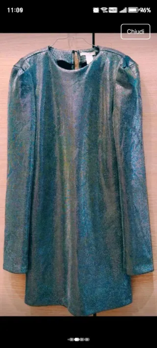 Elegante vestido H&M con un diseño brillante. - Mangas largas. - Tela metalizada. - Escote redondo.
