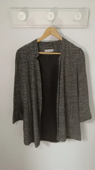 Elegante blazer jaspeado de H&M. - Diseño abierto. - Manga 3/4. - Tejido texturizado.