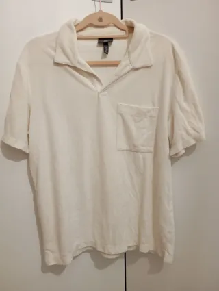 Camiseta de manga corta para hombre de H&M. - Cuello tipo polo. - Bolsillo en el pecho. - Tejido suave y cómodo.