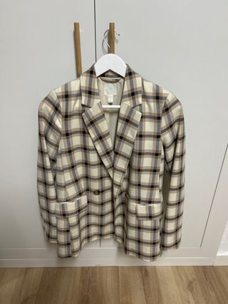 Elegante blazer de H&M con un clásico estampado de cuadros. Una prenda versátil para cualquier ocasión. - Diseño de cuadros en tonos beige y marrón. - Corte moderno y favorecedor.