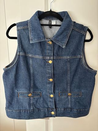 Sin estrenar. Botonadura en dorado. corte a la cintura. 54 cm de sisa a sisa y 53 cm de largo. Precio compra 25 €