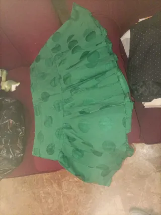 Falda de fiesta con un diseño de volantes y lunares. - Color verde vibrante. - Detalle de volantes en el bajo. - Estampado de lunares.