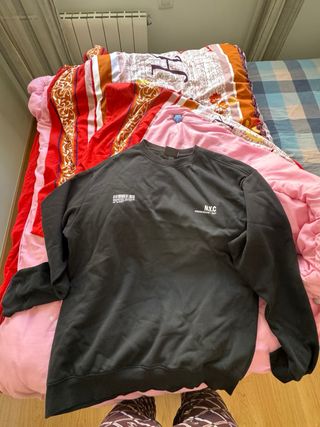 Sudadera negra sin capucha del H&M pone que es talla M, pero es bastante grande diría yo que es L