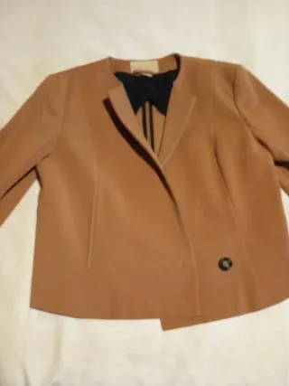 Chaqueta torera de corte moderno. - Diseño elegante. - Cierre con un botón. - Cuello redondo.