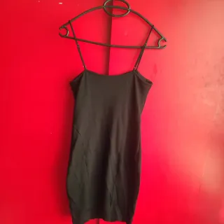 Vestido negro de H&M con un diseño elegante y moderno. La tela tiene una textura de encaje que le da un toque especial. - Detalle de banda elástica en la cintura. - Acabado con puntilla en el bajo.