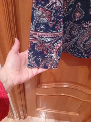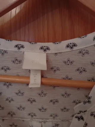 Blusón de H&M con un bonito estampado geométrico. - Diseño holgado y cómodo. - Manga larga abullonada. - Cuello con escote en V y botones. Queda muy holgado,le puedes poner un cinturón o llevarlo suelto, súper cómodo.