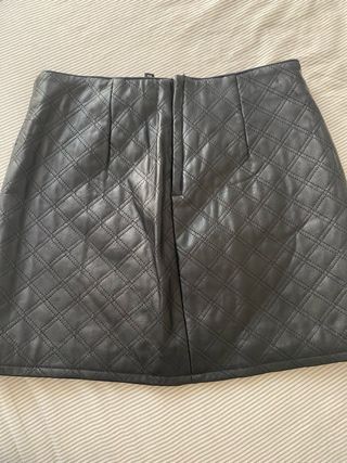 Mini falda de polipiel con diseño acolchado y cremalleras decorativas. - Diseño acolchado en rombos. - Dos bolsillos delanteros con cremallera. - Cierre de cremallera en la parte trasera.