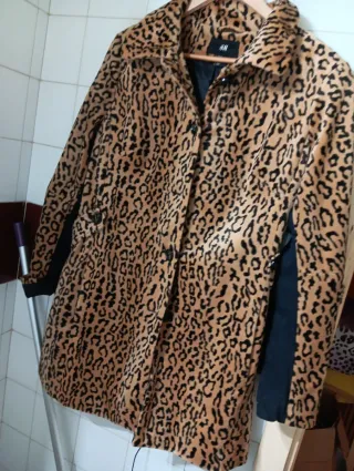 Abrigo de mujer con un llamativo estampado de leopardo. - Diseño de H&M. - Cuello clásico. - Cierre de botones. - Mangas largas. - Detalle en las mangas.