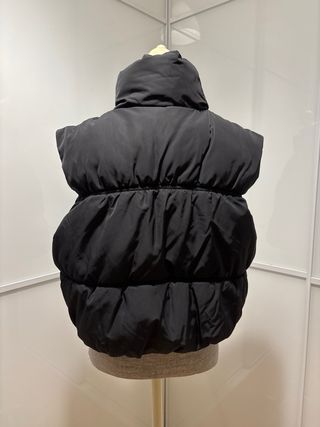 Chaleco acolchado de H&M en color negro. Es una prenda nueva, ideal para añadir una capa extra de abrigo. - Diseño acolchado. - Cuello alto. - Cierre de cremallera frontal.
