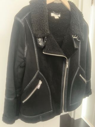 Cazadora estilo aviador con forro de borrego. - Exterior de antelina. - Cuello y puños con pelo. - Cierre de cremallera. - Bolsillos con cremallera.