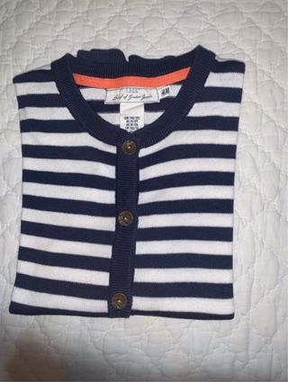 Chaqueta de punto con un diseño de rayas clásicas. - Cierre de botones. - Cuello redondo. - Detalle de ribete naranja en el cuello.