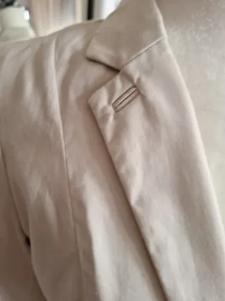 Elegante traje de chaqueta. - Color beige. - Diseño clásico con un botón. - Bolsillo de solapa.